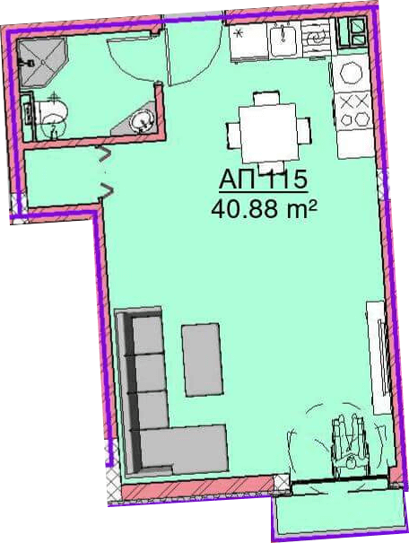 Net area 40,88 м2