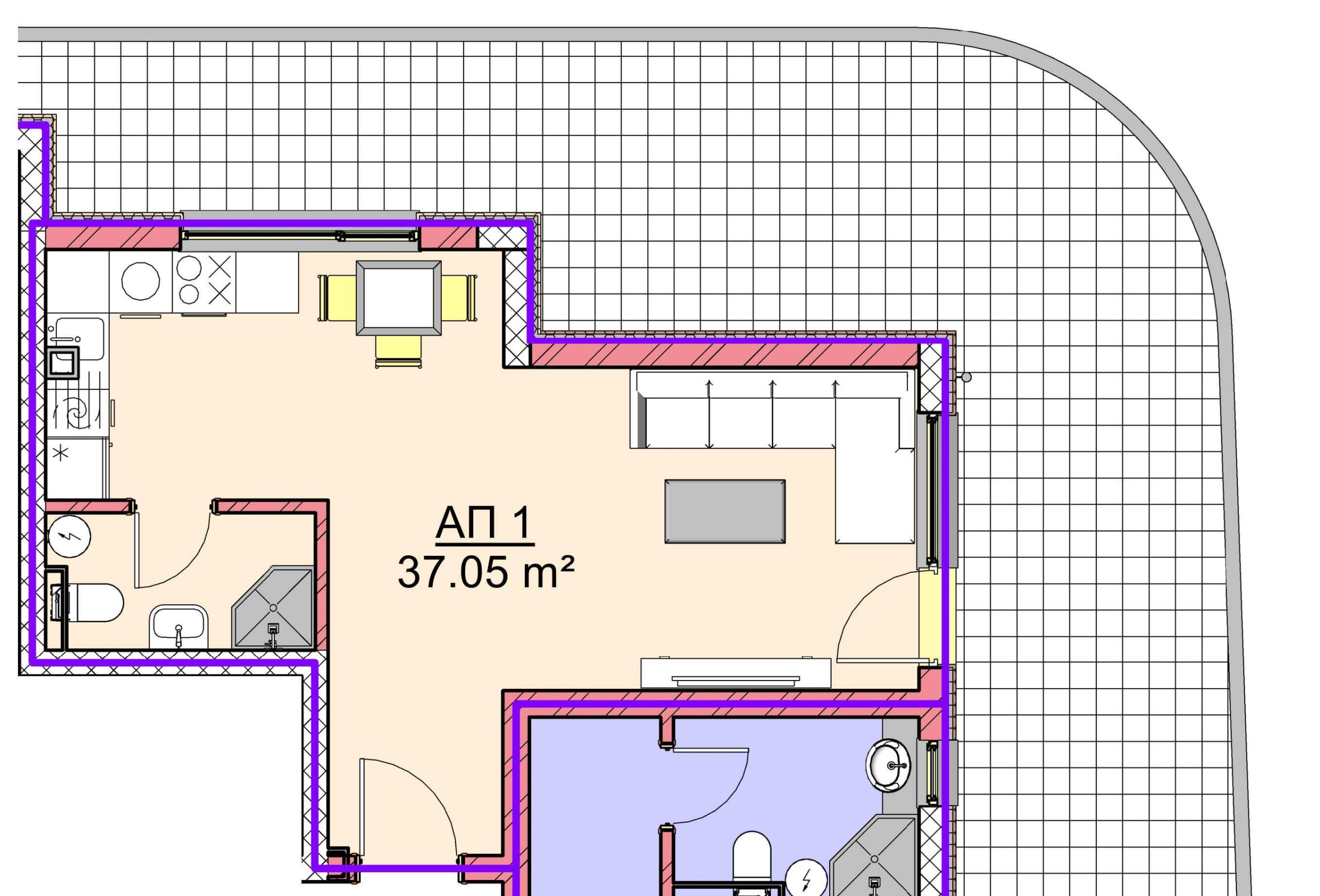 Апартамент- Дневна с кухненски бокс, баня с тоалетна