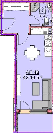 Апартамент – дневна с кухненски бокс, баня с тоалетна, коридор и тераса.