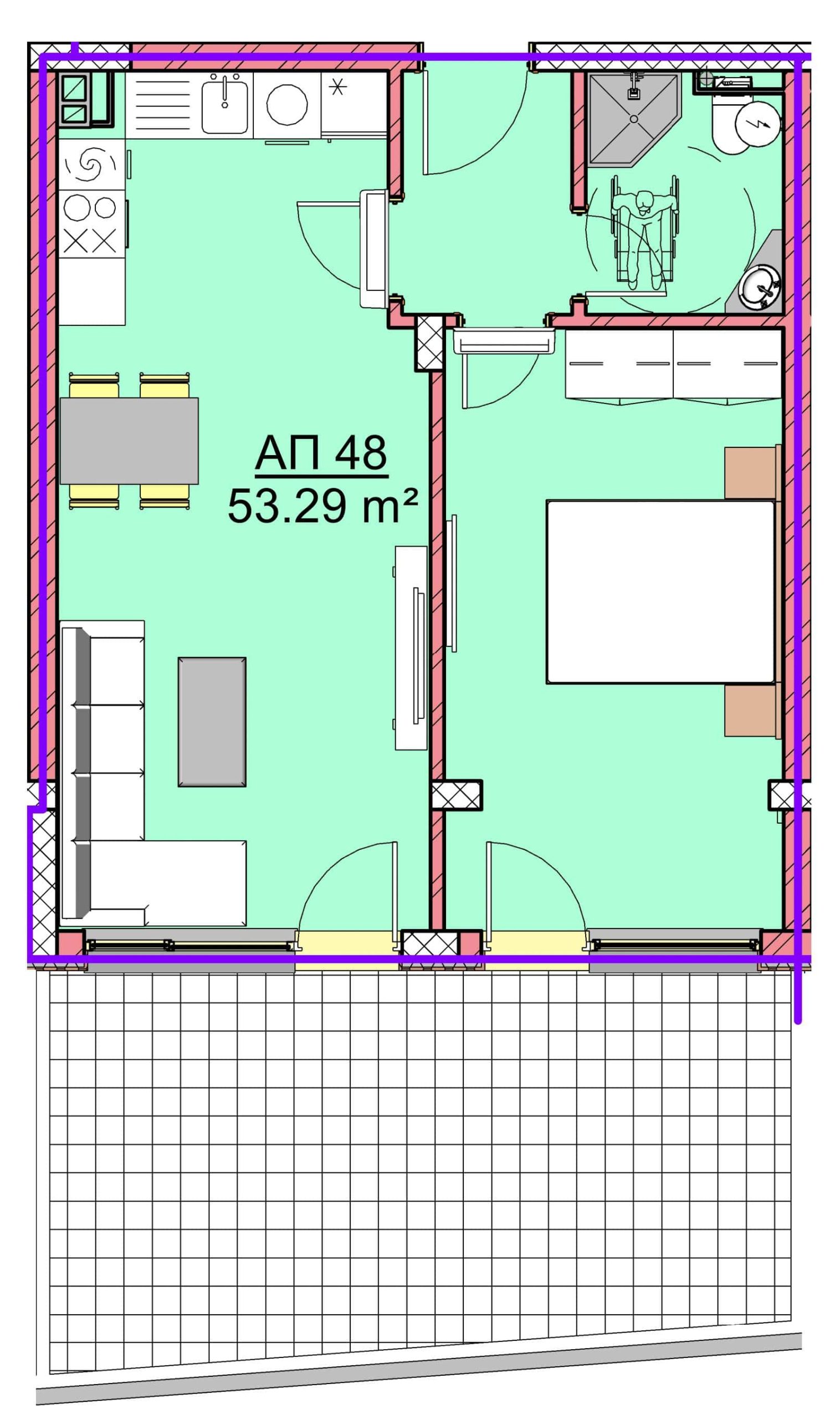 Апартамент- Дневна с кухненски бокс, спалня, баня с тоалетна, коридор и двор