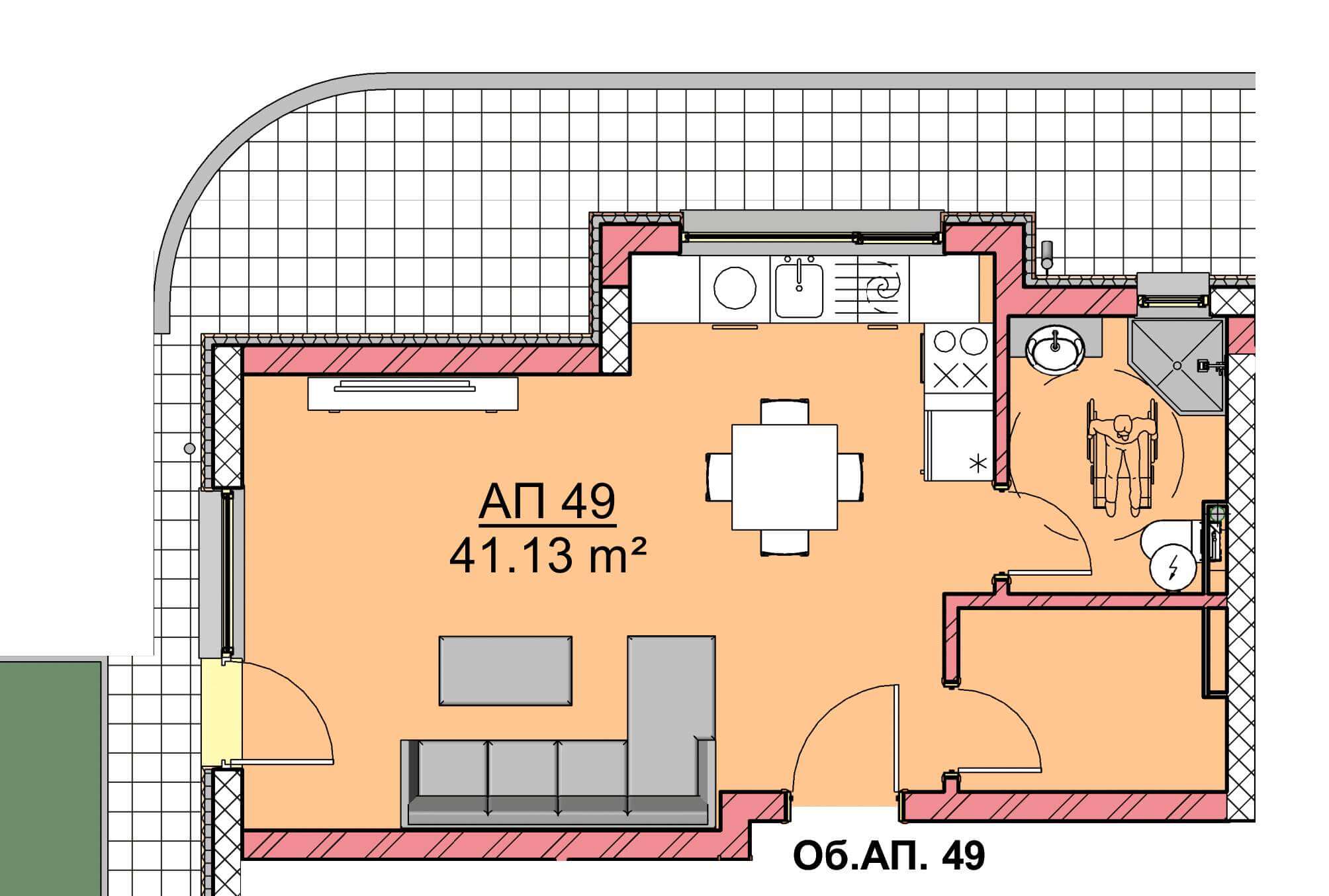 Апартамент- Дневна с кухненски бокс, баня с тоалетна, килер, коридор и двор.