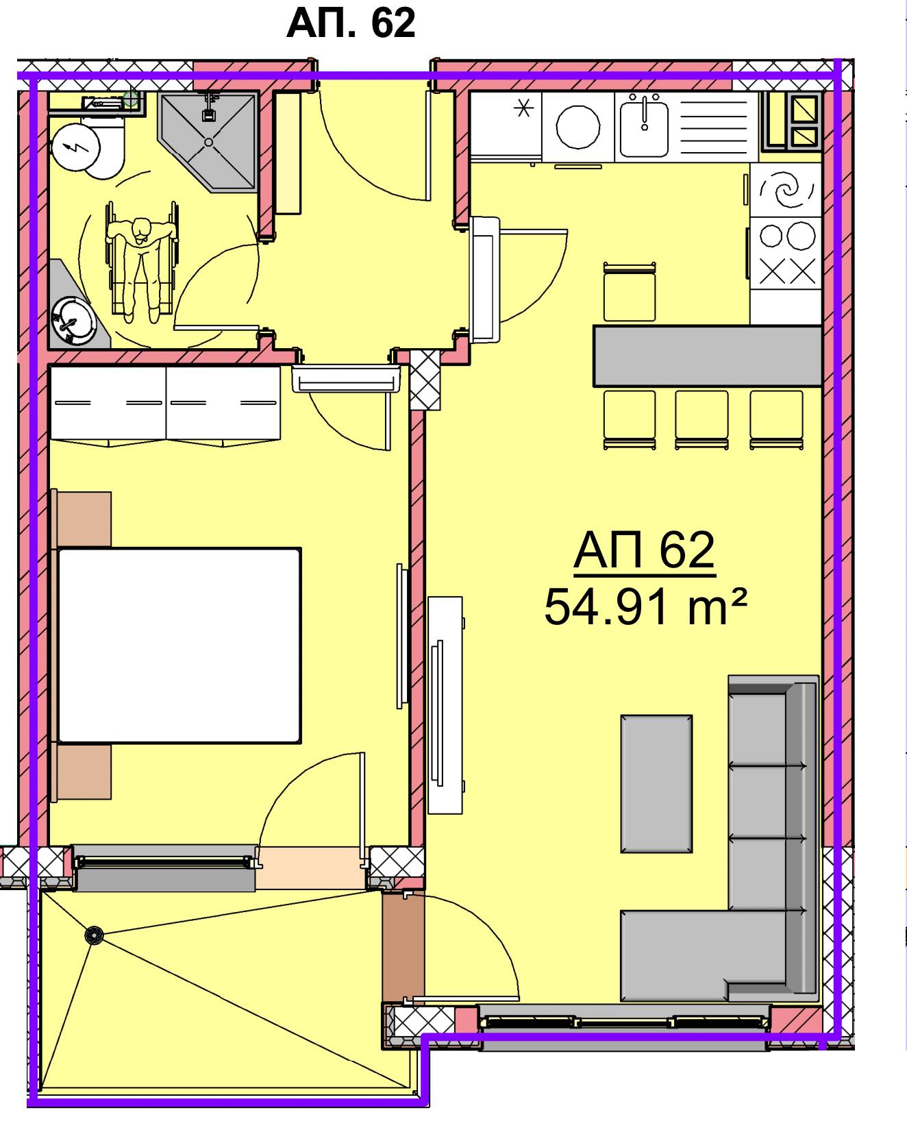 Чиста площ 54,91 м2