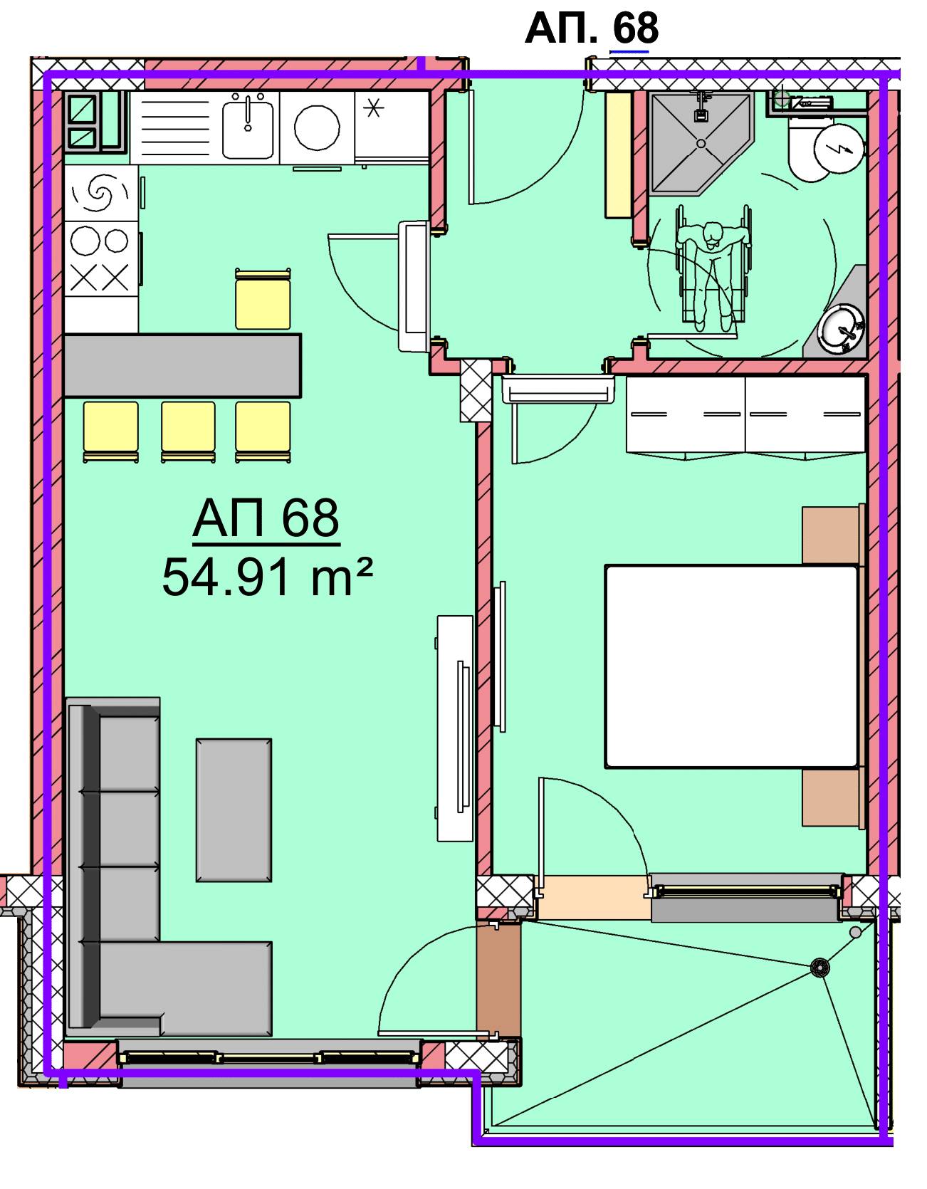 Чиста площ 54,91 м2