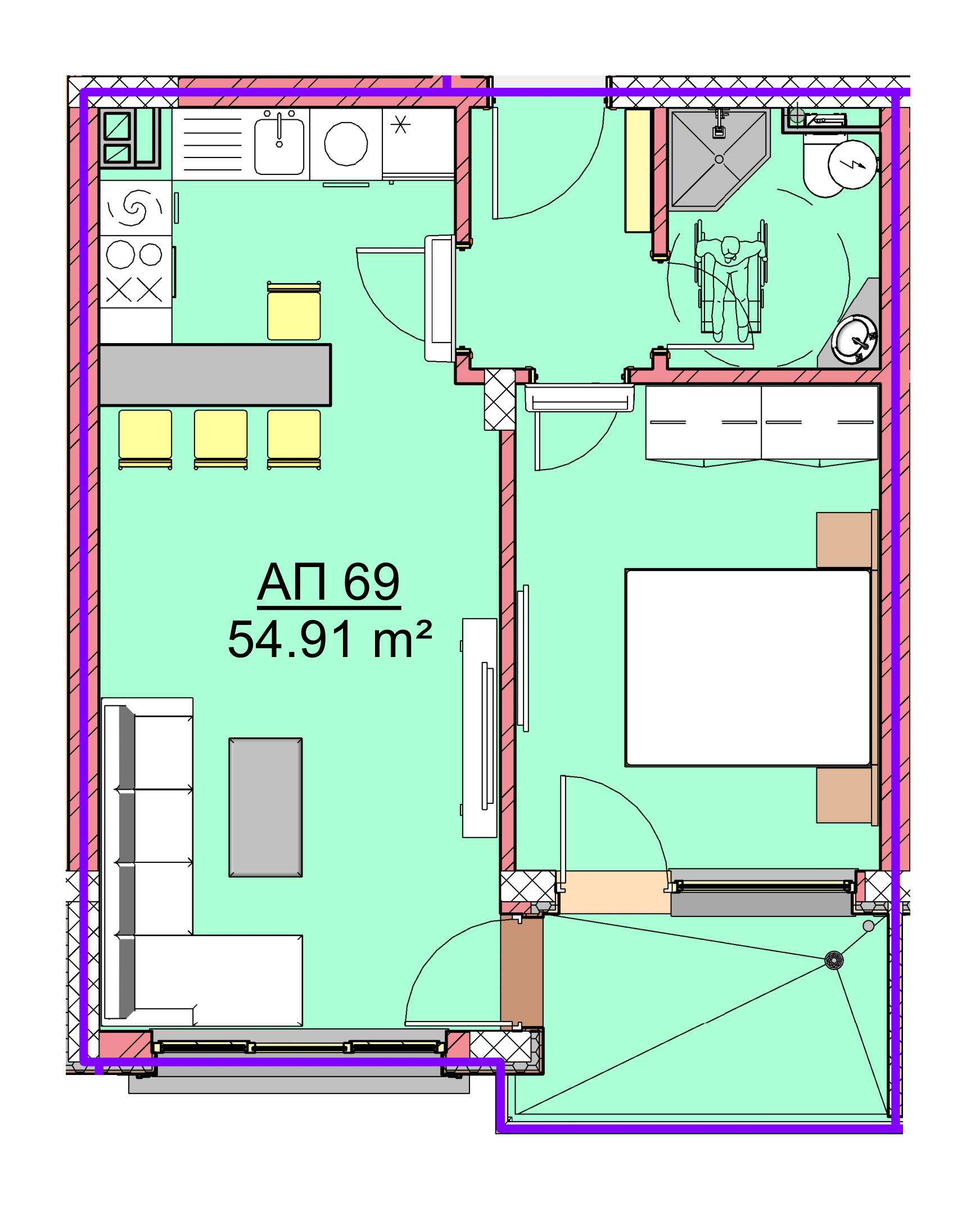 Чиста площ 54,91 м2