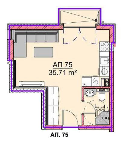 Апартамент- Дневна с кухненски бокс, баня с тоалетна, коридор и терасa.