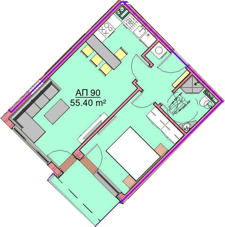 Апартамент – дневна с кухненски бокс, спалня, баня с тоалетна, коридор и тераса.