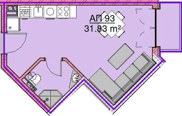 Чиста площ 31,83 м2
