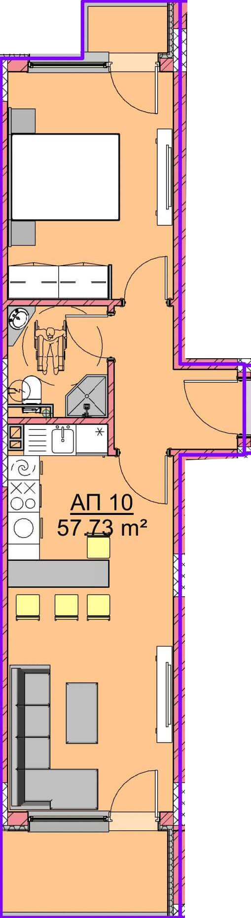 Daire – mutfaklı oturma odası, yatak odası, banyo ve tuvalet, koridor ve 2 teras.