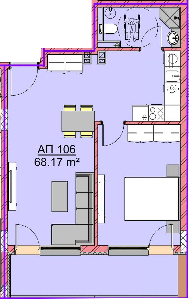 Daire – mutfaklı oturma odası, yatak odası, banyo ve tuvalet, teras.