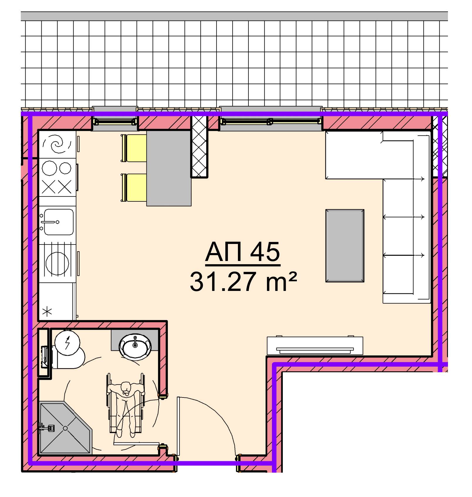 Daire – Mutfaklı oturma odası, banyo ve tuvalet