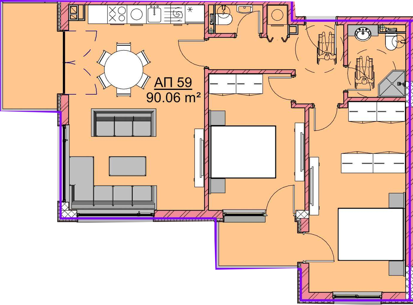 Daire – mutfaklı oturma odası, 2 yatak odası, banyo ve tuvalet, tuvalet, kiler, koridor ve 2 teras.