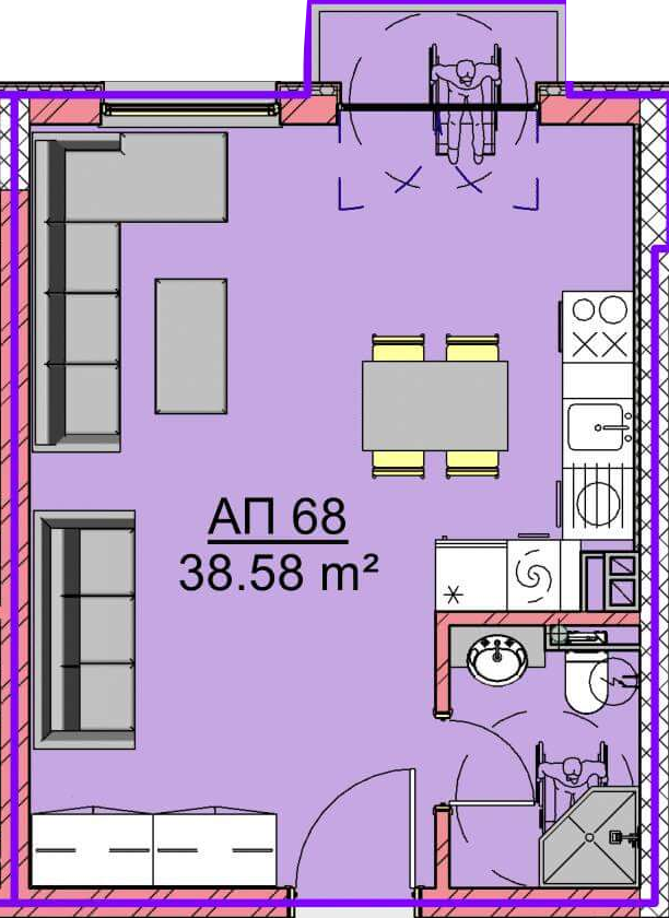 Daire – mutfaklı oturma odası, banyo ve tuvalet, teras.