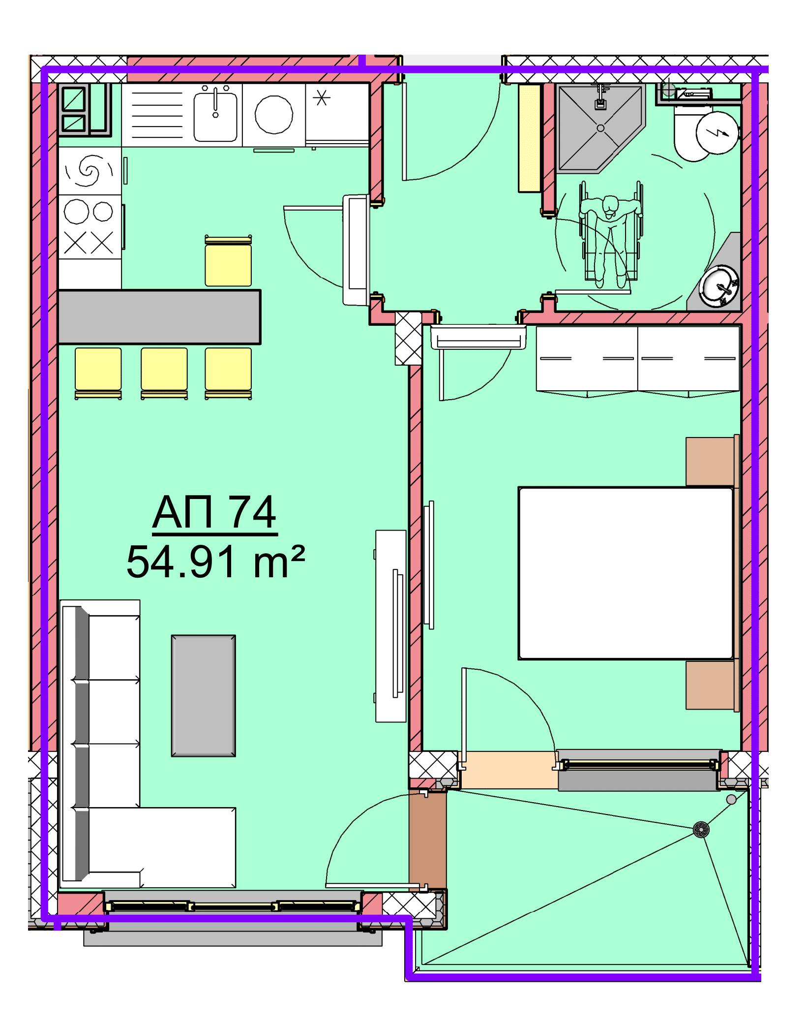 Net alan 54,91 м2