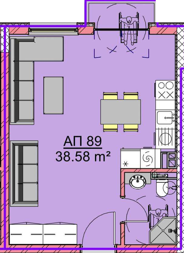 Daire – mutfaklı oturma odası, banyo ve tuvalet, teras.