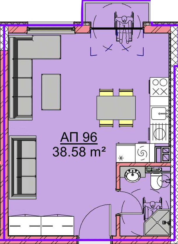 Daire – mutfaklı oturma odası, banyo ve tuvalet, teras.